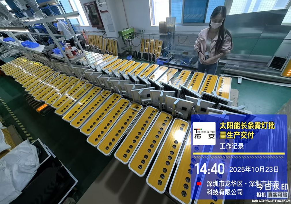 下面拍攝的圖片是250套太陽能同步邊緣警示燈的部分生產(chǎn)圖: