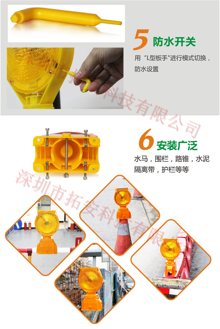 · 安裝廣泛,如:水馬,圍欄,路錐,水泥隔離帶,護欄等。