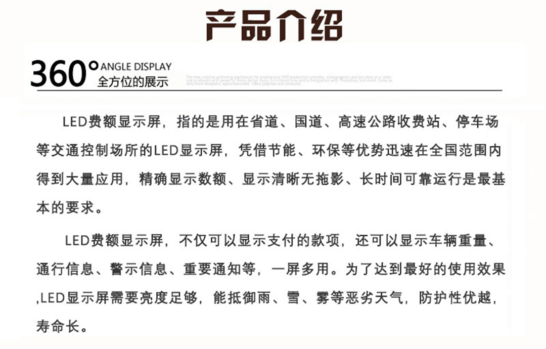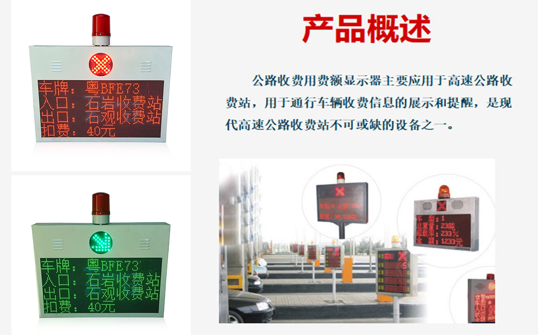 費額顯示器又名費額顯示屏,收費站費額顯示器,車道費顯器,高速公路費額顯示器等,集成LED費額實時顯示和當(dāng)前車道指示狀態(tài),匹配國內(nèi)各省高速收費平臺,對接