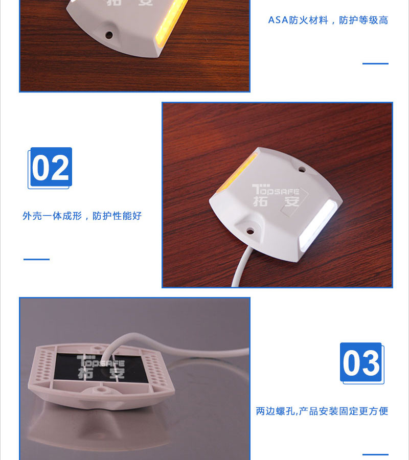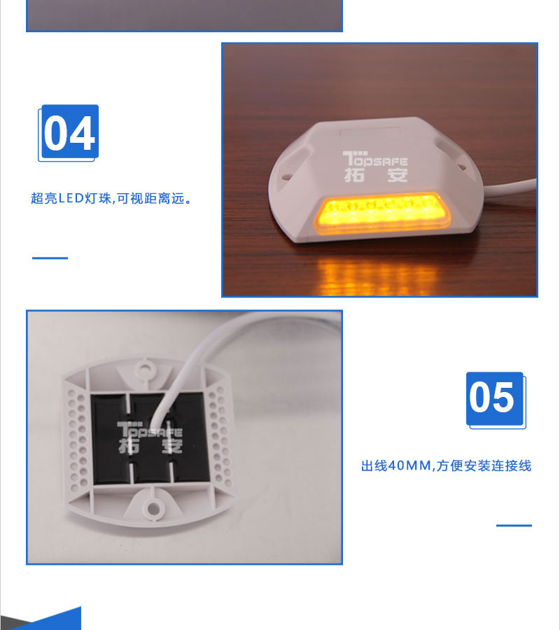 產(chǎn)品概述:誘導(dǎo)燈是一種主動(dòng)發(fā)光的產(chǎn)品,在視線不良的環(huán)境下清晰勾勒道路輪廓,指示誘導(dǎo)安全通行,保障交通安全的指示標(biāo)志。
